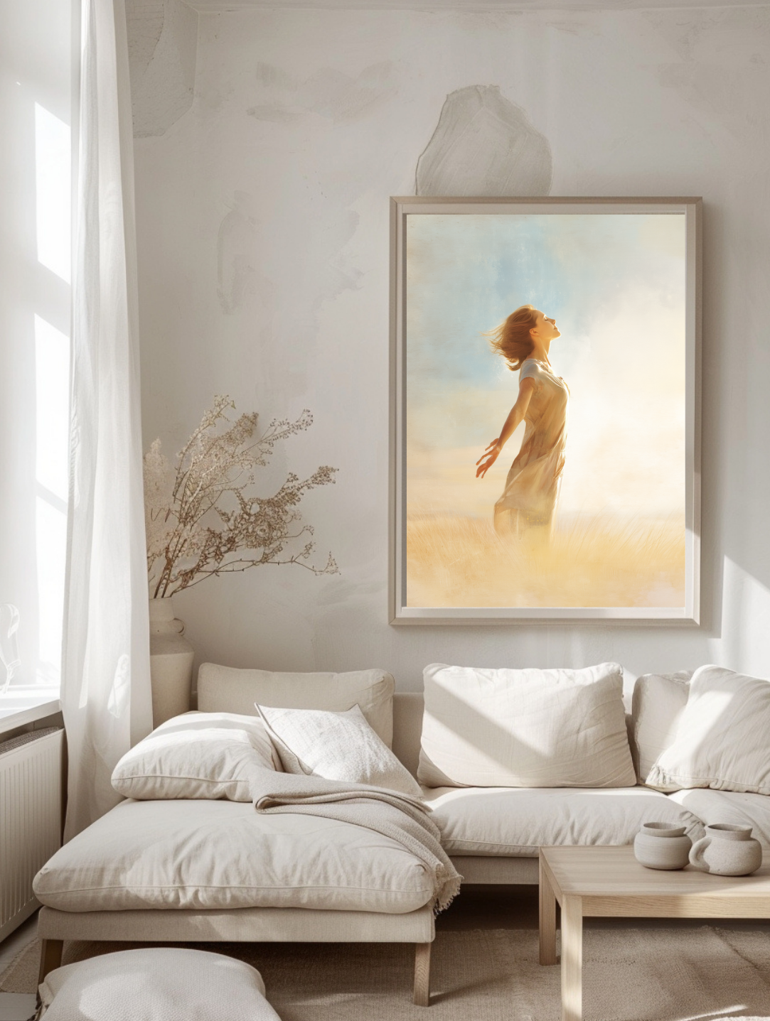 “Respirar” no es solo un acto físico, es el puente que te devuelve al momento presente. Esta lámina simboliza ese instante en el que la vida se desacelera y vuelves a ti. Perfecta para quienes atraviesan momentos de ansiedad o buscan un refugio de calma en su espacio.